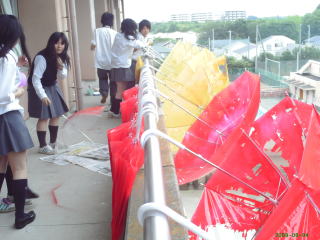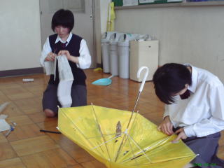傘に塗料を塗るのに